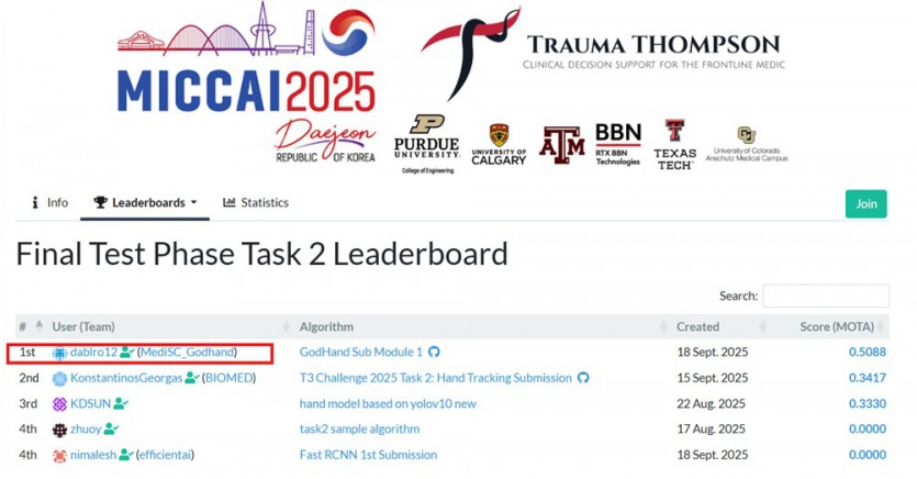- 수상주제 : The Trauma THOMPSON Challenge 2025 introduces a multimodal benchmark for advancing AI in emergency and humanitarian medicine (Task 2 : Emergency procedure hand tracking)